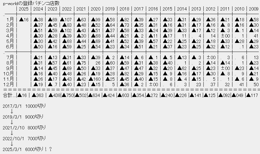 ピーワールドに掲載が無い営業店舗も含めるとまだ6200、6300店舗くらいあるぞ(情報島)