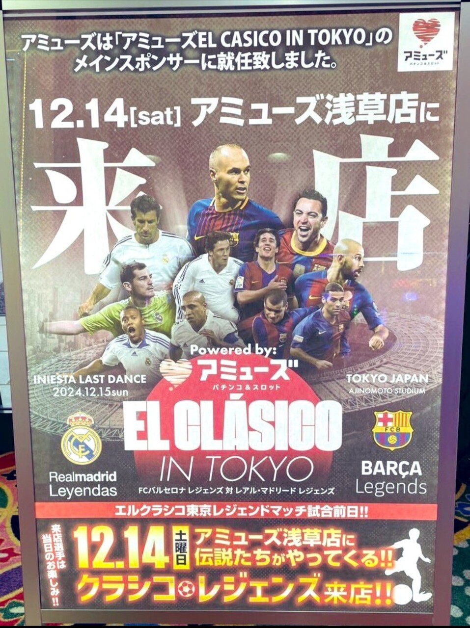東京・浅草のパチンコ店「アミューズ浅草」に12月14日、スペインのサッカーチーム「FCバルセロナ」と「レアルマドリード」のレジェンド選手らが来店することが発表されました。同店によると、ゲストとして「パチンコ店に海外のサッカー選手が来店するのは業界で初」としています。