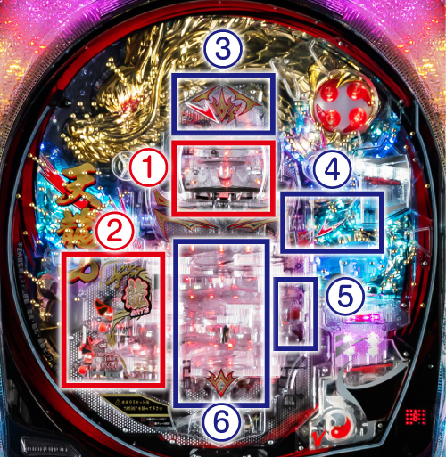 玉の動きを最大限に生かした演出面では、最上段の役物が「無限回廊」として生まれ変わった。「無限回廊」に入賞した玉は、クルーン奥2つの回転体の周りを無限(∞)の軌道を描き滞留。その後、成功パターンの場合、クルーン手前の回転体内にある通り道を経由し、3段クルーンに入賞する流れだ。