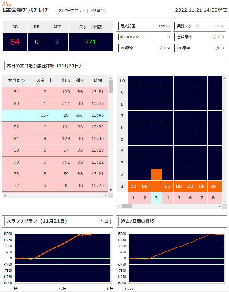 プラスマイナス10万円強の機械って怖いな。うちの近所はヴァルヴレイヴが大手でも入って数台程度。数十台導入するところは設定期待できそうだが、初日で6引いた人はいいよな。初期投資いくらかかるのやら。夜には阿鼻叫喚の書き込みだらけだろう。